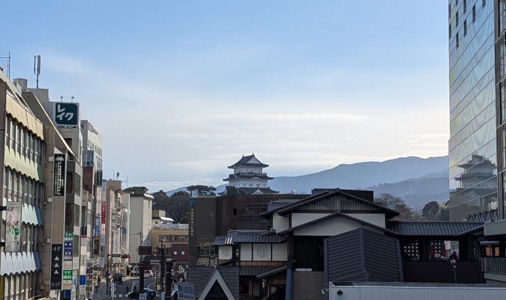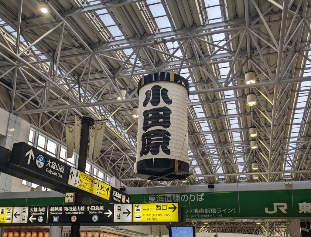 明るい時間は駅を出てすぐ小田原城天守が見えます