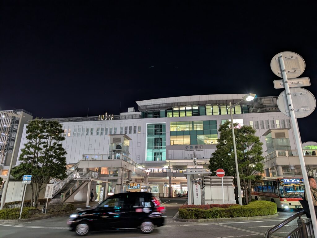 遅い時間の上りの東海道線は席が空いてゆったり、旅の帰途感を楽しみます。